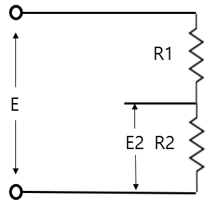 따라서 R1, R2에 걸리는 전압을 각각 E1, E2라고 하면,