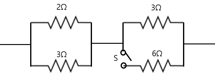 문제3) 다음의 회로에서 스위치 S를 열었을 때 전류는 10A가 흘렀다. 스위치를 닫으면 얼마의 전류가 흐를까?