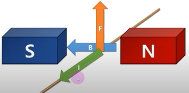 ==> 왼손법칙, 전동기(자석에 직각으로 전선을 두고, 전기를 흘려 전선을 돌리는 모터)
