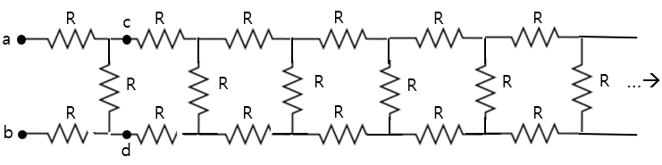 c와 d노드의 오른쪽 전부를 더한 저항이나 무한히 반복된다면 무슨 차이가 있겠습니까?