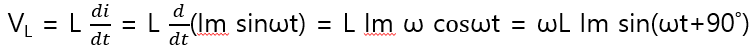 i(t)와 v(t)식을 보면 i(t) = Im sin ωt와 v(t) = ωL Im sin (ωt+90˚)로